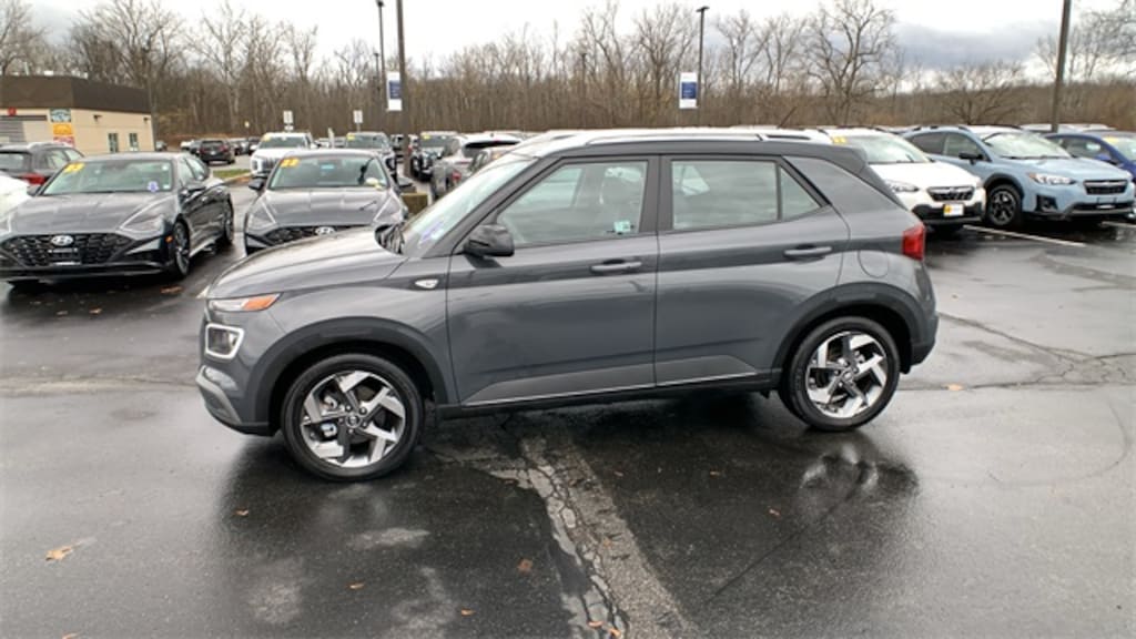 Certified. Ecotronic Gray w/Black Roof 2025 Hyundai Venue Limited FWD CVT I4 4-Wheel Disc Brakes, 6 Speakers, 6.5J x 17" Alloy Wheels, ABS brakes, Air Conditioning, Alloy wheels, AM/FM radio: SiriusXM, Apple CarPlay & Android Auto, Auto High-beam Headlights, Automatic temperature control, Brake assist, Bumpers: body-color, Cargo Net, Carpeted Floor Mats, Cloth & Leatherette Seat Trim, Delay-off headlights, Driver door bin, Driver vanity mirror, Dual front impact airbags, Dual front side impact airbags, Electronic Stability Control, Emergency communication system, Front anti-roll bar, Front Bucket Seats, Front Center Armrest, Front reading lights, Front wheel independent suspension, Fully automatic headlights, Heated door mirrors, Heated Front Bucket Seats, Heated front seats, Illuminated entry, Leather Shift Knob, Leather steering wheel, Low tire pressure warning, Mudguards, Navigation System, Occupant sensing airbag, Option Group 01, Outside temperature display, Overhead airbag, Overhead console, Panic alarm, Passenger door bin, Passenger vanity mirror, Power door mirrors, Power steering, Power windows, Radio: AM/FM/HD/SiriusXM w/Navigation System, Rear Seat Cup Holder, Rear window defroster, Rear window wiper, Remote keyless entry, Reversible Cargo Tray, Security system, Speed control, Speed-sensing steering, Split folding rear seat, Spoiler, Steering wheel mounted audio controls, Tachometer, Telescoping steering wheel, Tilt steering wheel, Traction control, Trip computer, Variably intermittent wipers, Wheel Locks.
