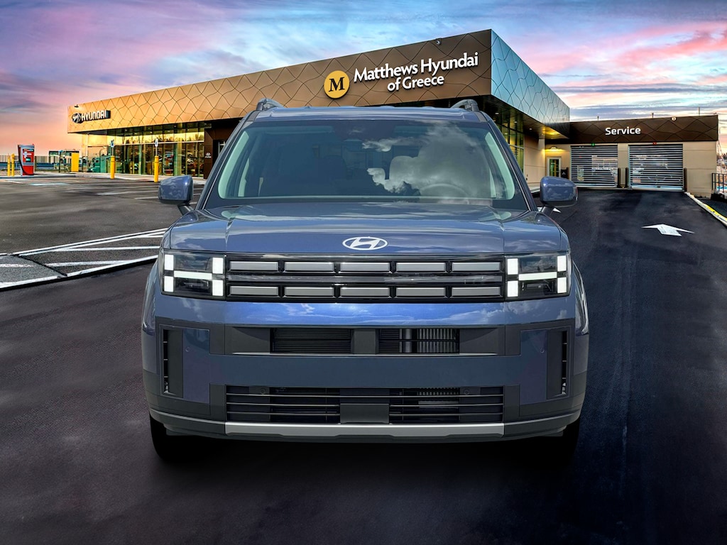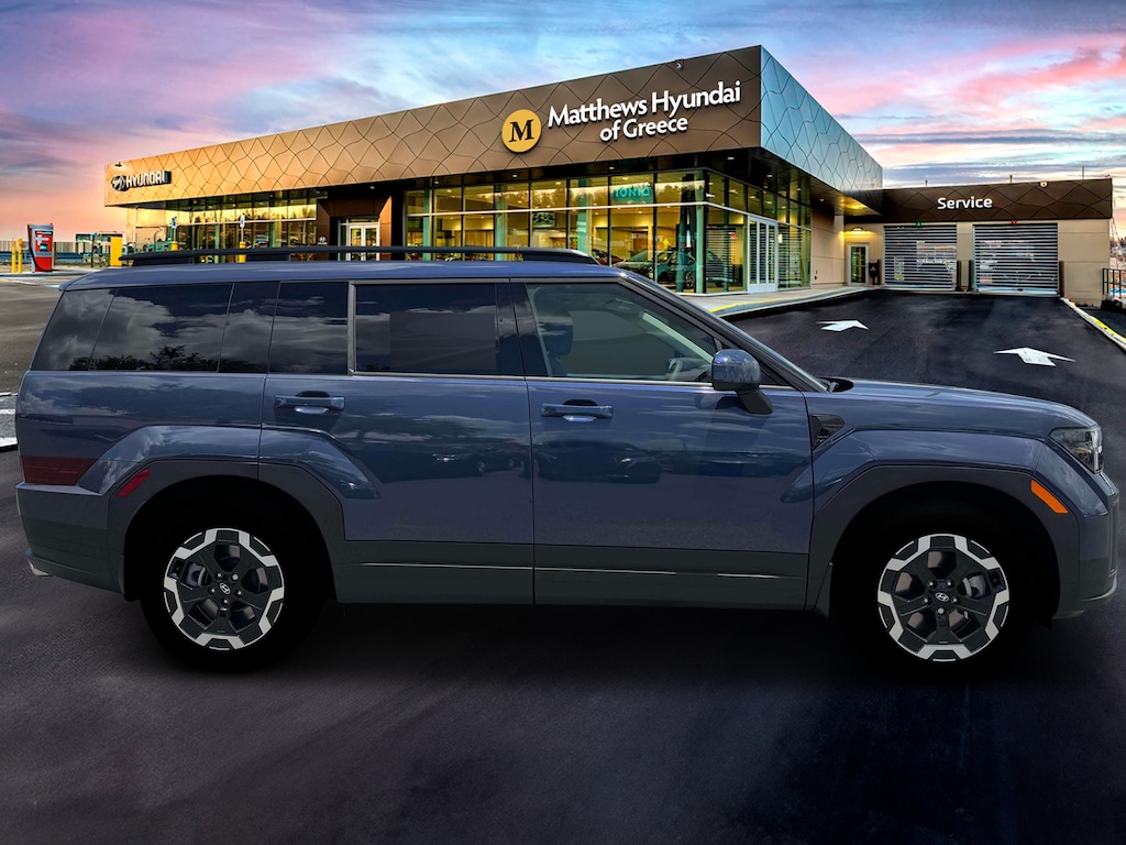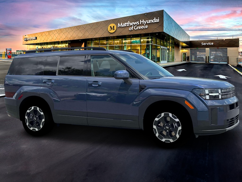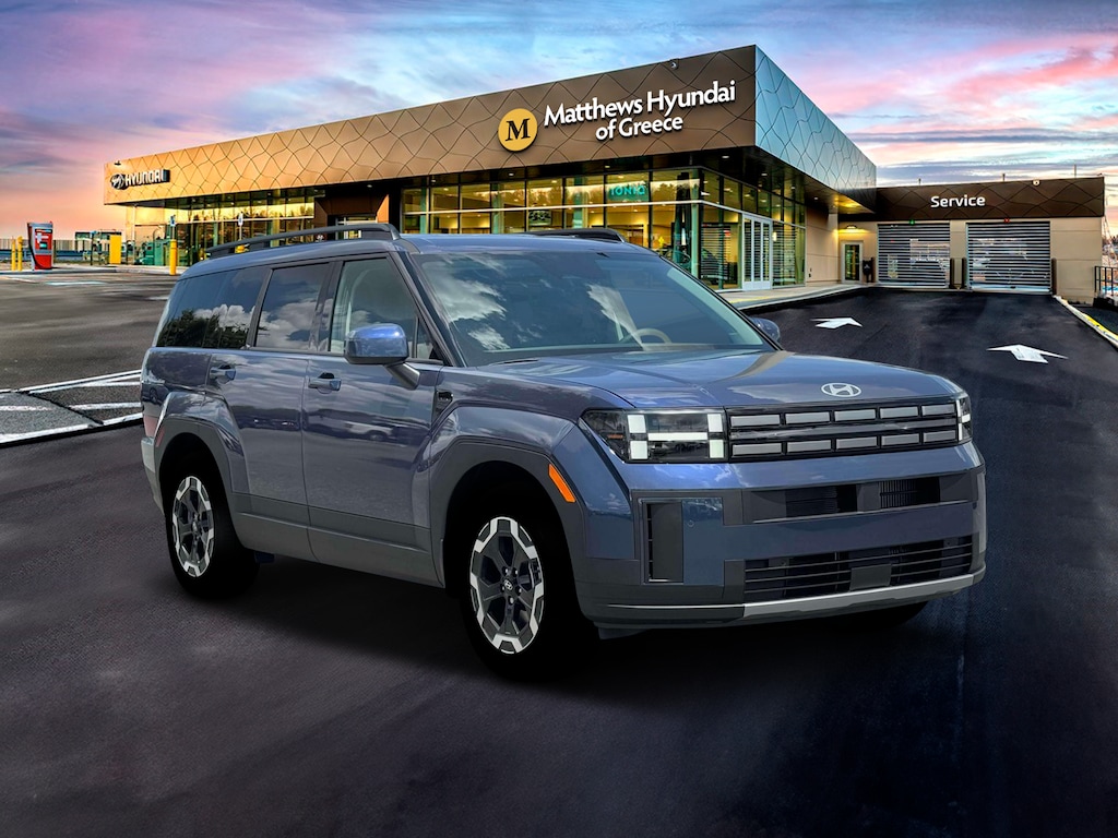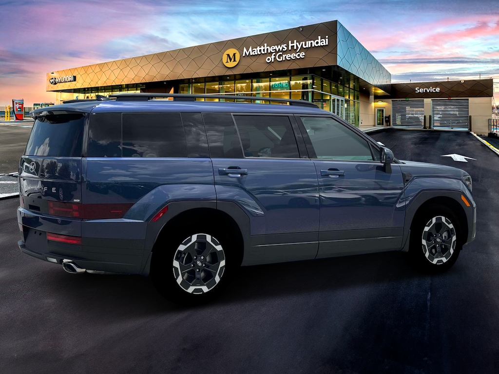 Blue 2026 Hyundai Santa Fe SEL AWD 8-Speed Automatic with SHIFTRONIC 2.5L I4 AWD, Black Premium Synthetic.