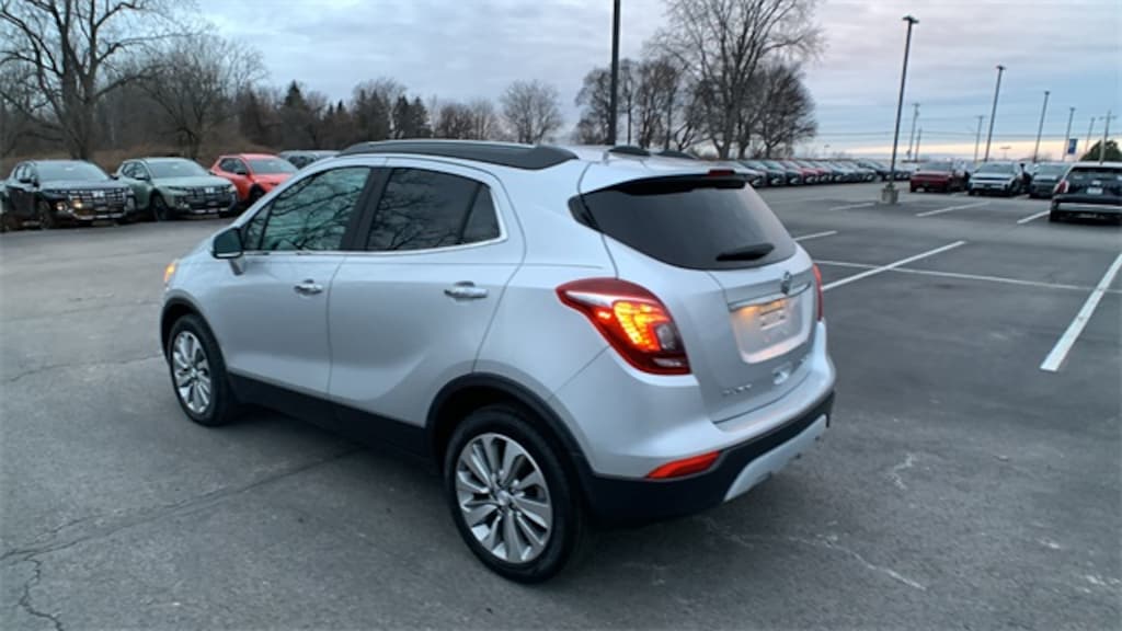 Quicksilver Metallic 2018 Buick Encore Preferred FWD 6-Speed Automatic Electronic with Overdrive ECOTEC 1.4L I4 SMPI DOHC Turbocharged VVT 2-Way Manual Front Passenger Seat Adjuster, 3.53 Final Drive Axle Ratio, 4-Wheel Disc Brakes, 6 Speakers, 6-Speaker Audio System, 6-Way Power Driver Seat Adjuster, ABS brakes, Air Conditioning, All-Weather Floor Mats, Alloy wheels, AM/FM radio: SiriusXM, Apple CarPlay/Android Auto, Brake assist, Buick Interior Protection Package (LPO), Bumpers: body-color, Cloth w/Leatherette Seat Trim, Color-Keyed Carpeted Cargo Mat (LPO), Compass, Delay-off headlights, Driver door bin, Driver vanity mirror, Driver's Seat Mounted Armrest, Dual front impact airbags, Dual front side impact airbags, Electronic Stability Control, Emergency communication system: OnStar Guidance, Exterior Parking Camera Rear, Front anti-roll bar, Front Bucket Seats, Front reading lights, Front wheel independent suspension, Fully automatic headlights, Heated door mirrors, Illuminated entry, Knee airbag, Low tire pressure warning, Occupant sensing airbag, Outside temperature display, Overhead airbag, Panic alarm, Passenger door bin, Passenger vanity mirror, Power door mirrors, Power driver seat, Power steering, Power windows, Preferred Equipment Group 1SB, Radio data system, Radio: Buick Infotainment System AM/FM Stereo, Rear seat center armrest, Rear side impact airbag, Rear window defroster, Rear window wiper, Remote keyless entry, Ride & Handling Suspension, Roof rack: rails only, Security system, SiriusXM Satellite Radio, Speed control, Speed-sensing steering, Split folding rear seat, Spoiler, Steering wheel mounted audio controls, Tachometer, Telescoping steering wheel, Tilt steering wheel, Traction control, Trip computer, Turn signal indicator mirrors, Variably intermittent wipers, Wheels: 18" Machined-Face Alloy.