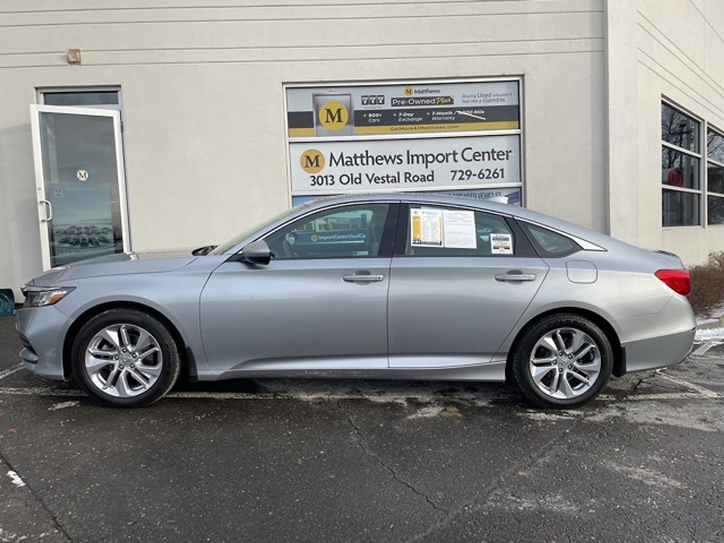 Silver 2019 Honda Accord LX FWD CVT 1.5T I4 DOHC 16V Turbocharged VTEC30/38 City/Highway MPGAwards: * JD Power Automotive Performance Execution and Layout (APEAL) Study * ALG Residual Value Awards Residual Value AwardsMatthews Import Center promises each customer a thorough and confident 120-point inspection on our used inventory guaranteeing a relaxing and peace-of-mind experience. We are located behind Lowes in Vestal NY. Or call us at (607) 729 - 6261 Matthews Import Center 3013 Old Vestal Road Vestal NY 13850.Odometer is 5196 miles below market average!