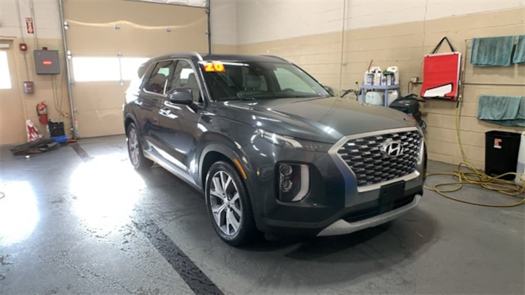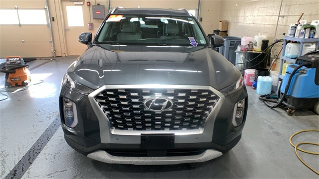 Steel Graphite 2020 Hyundai Palisade SEL AWD 8-Speed Automatic with SHIFTRONIC V6 115-Volt AC Power Outlet, 3.648 Axle Ratio, 3rd row seats: split-bench, 3rd Row USB Outlets, 4-Wheel Disc Brakes, 6 Speakers, 7" High Resolution Cluster Display, 8-Way Power Adjustable Passenger Seat, ABS brakes, Air Conditioning, Alloy wheels, AM/FM radio, Apple CarPlay & Android Auto, Artificial Leather-Wrapped Dashboard, Auto High-beam Headlights, Auto Leveling Rear Suspension, Auto-dimming Rear-View mirror, Automatic temperature control, Bi-LED Headlights, Brake assist, Bumpers: body-color, Carpeted Floor Mats, Convenience Package P2, Delay-off headlights, Driver door bin, Driver vanity mirror, Dual front impact airbags, Dual front side impact airbags, Electronic Stability Control, First Aid Kit, Four wheel independent suspension, Front anti-roll bar, Front Bucket Seats, Front Center Armrest, Front dual zone A/C, Front reading lights, Fully automatic headlights, Garage door transmitter: HomeLink, Hands-Free Smart Liftgate w/Auto Open, Heated 2nd Row Seats, Heated door mirrors, Heated Front Bucket Seats, Heated front seats, Heated Steering Wheel, Illuminated entry, Integrated Memory System, Knee airbag, Leather Seat Trim, LED Taillights, Low tire pressure warning, Occupant sensing airbag, Outside temperature display, Overhead airbag, Overhead console, Panic alarm, Parking Distance Warning - Forward, Passenger door bin, Passenger vanity mirror, Power 3rd Row Seating, Power door mirrors, Power driver seat, Power steering, Power Sunroof P5, Power windows, Premium & Drive Guidance, Premium Package P3, Radio data system, Radio: AM/FM/MP3 Display Audio, Radio: AM/FM/MP3 Premium Audio System, Rear air conditioning, Rear anti-roll bar, Rear Side Window Sunshades, Rear window defroster, Rear window wiper, Reclining 3rd row seat, Remote keyless entry, Security system, Speed control, Speed-sensing steering, Split folding rear seat, Spoiler, Stain Resistant Cloth Seat Trim, Steering wheel mounted audio controls, Tachometer, Telescoping steering wheel, Tilt steering wheel, Tow Hitch, Traction control, Trip computer, Turn signal indicator mirrors, Ultrasonic Rear Seat Occupant Minder, Variably intermittent wipers, Wheels: 18" x 7.5J Machine Finish Alloy, Wheels: 20"x 7.5J Split 5-Spoke Machined Alloy, Wireless Phone Charger.