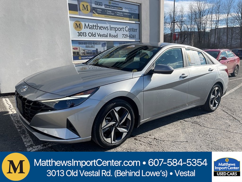 Shimmering Silver Pearl 2023 Hyundai Elantra SEL FWD CVT I430/40 City/Highway MPGMatthews Import Center promises each customer a thorough and confident 120-point inspection on our used inventory guaranteeing a relaxing and peace-of-mind experience. We are located behind Lowes in Vestal NY. Or call us at (607) 729 - 6261 Matthews Import Center 3013 Old Vestal Road Vestal NY 13850.