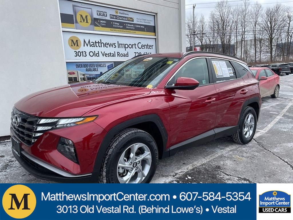 Matthews Import Center promises each customer a thorough and confident 120-point inspection on our used inventory guaranteeing a relaxing and peace-of-mind experience. We are located behind Lowes in Vestal NY. Or call us at (607) 729 - 6261Matthews Import Center3013 Old Vestal RoadVestal NY 13850. Ultimate Red 2024 Hyundai SEL Tucson AWD 8-Speed Automatic with SHIFTRONIC 2.5L I4 DGI DOHC 16V LEV3-SULEV30 187hpOdometer is 1899 miles below market average! 23/29 City/Highway MPG