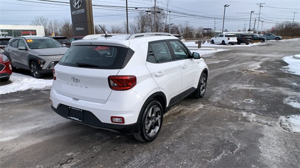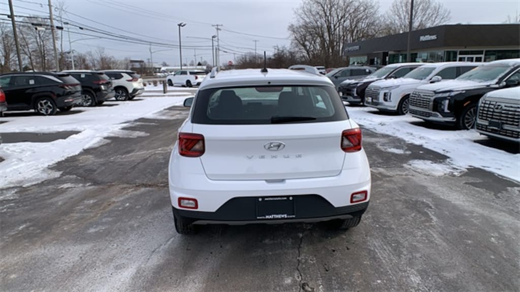 Lunar White 2025 Hyundai Venue SEL FWD CVT I4 4-Wheel Disc Brakes, 6 Speakers, 6.5J x 17" Alloy Wheels, ABS brakes, Air Conditioning, Alloy wheels, AM/FM radio, Apple CarPlay & Android Auto, Auto High-beam Headlights, Automatic temperature control, Brake assist, Bumpers: body-color, Cargo Net, Carpeted Floor Mats, Cloth Seat Trim, Delay-off headlights, Driver door bin, Driver vanity mirror, Dual front impact airbags, Dual front side impact airbags, Electronic Stability Control, First Aid Kit, Front anti-roll bar, Front Bucket Seats, Front Center Armrest, Front reading lights, Front wheel independent suspension, Fully automatic headlights, Illuminated entry, Leather Shift Knob, Leather steering wheel, Low tire pressure warning, Mudguards, Occupant sensing airbag, Option Group 01, Outside temperature display, Overhead airbag, Overhead console, Panic alarm, Passenger door bin, Passenger vanity mirror, Power door mirrors, Power moonroof, Power steering, Power windows, Radio: AM/FM/HD Display Audio, Rear Seat Cup Holder, Rear window defroster, Rear window wiper, Remote keyless entry, Reversible Cargo Tray, Security system, Speed control, Speed-sensing steering, Split folding rear seat, Spoiler, Steering wheel mounted audio controls, Tachometer, Telescoping steering wheel, Tilt steering wheel, Traction control, Trip computer, Variably intermittent wipers, Wheel Locks.